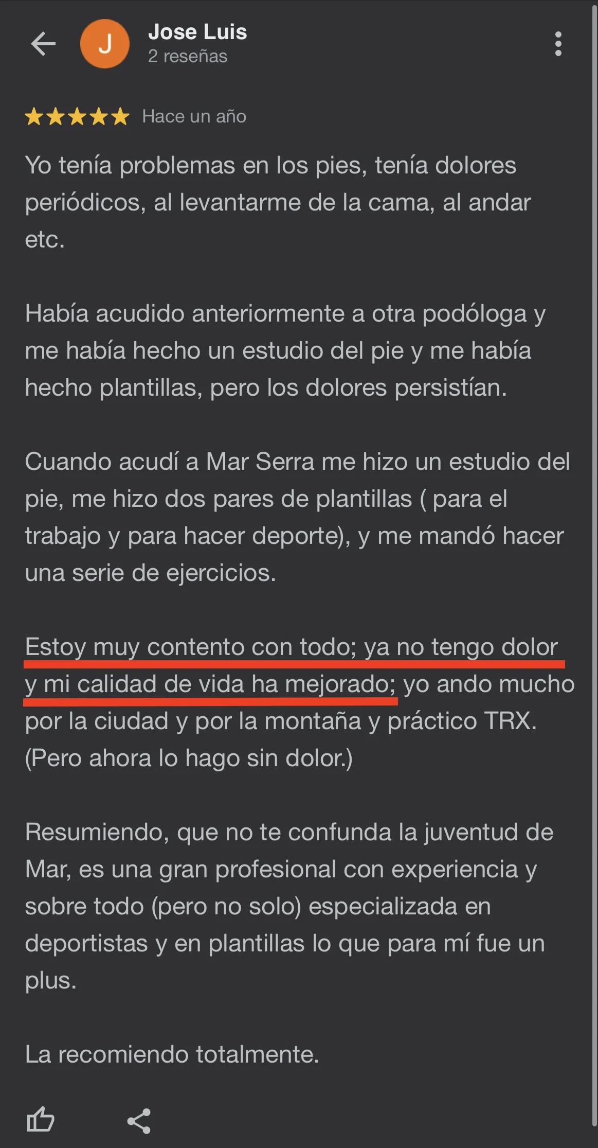 Y cuanto más tiempo pase, más difícil será eliminar el dolor a la lesión al 100% (sin que se quede algo para siempre).